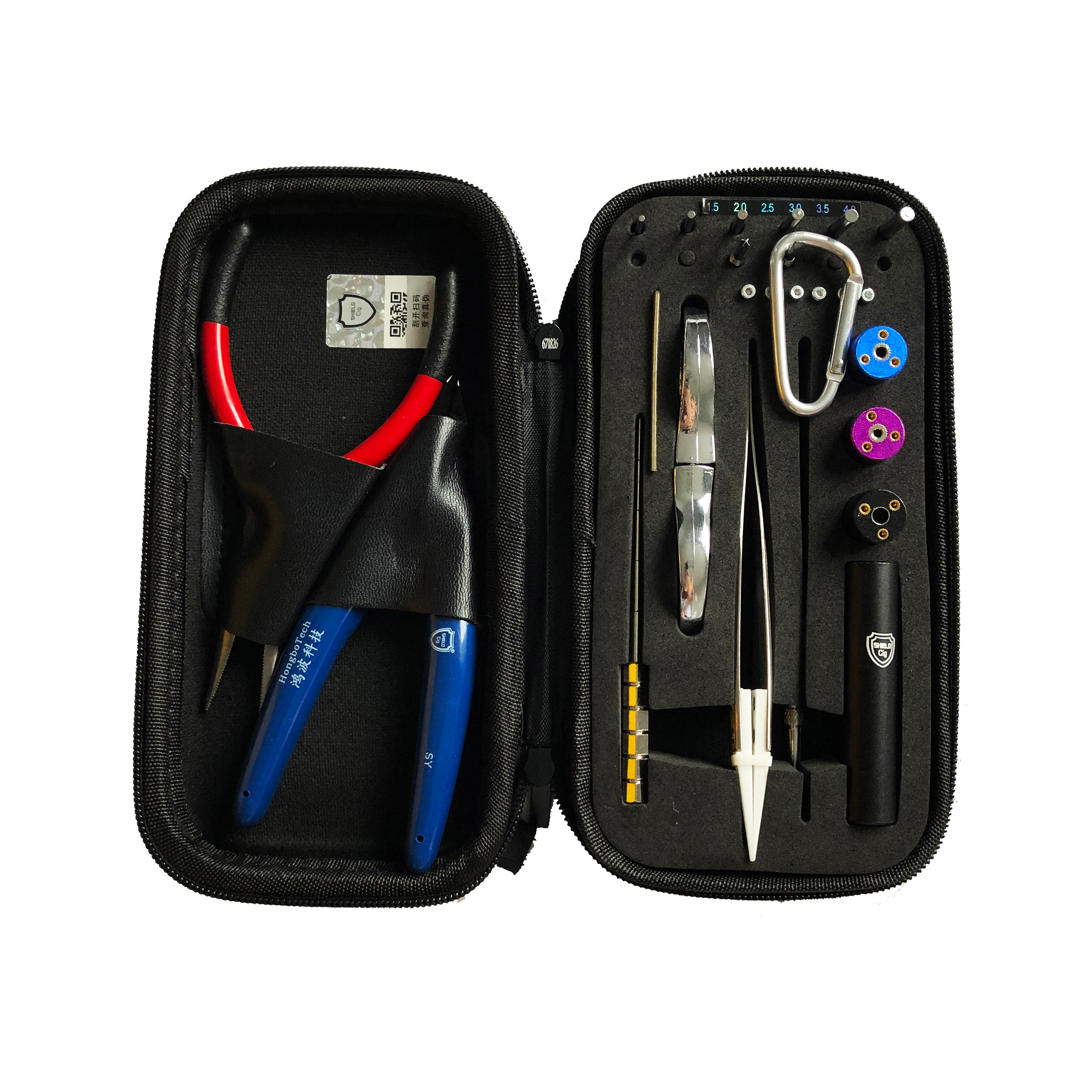This kit includes: 1x diagonal pliers, 1x needle-nose pliers, 1x folding scissors, 1x coiling kit, 1x screwdriver kit, 1x tweezers and 6x hex screws.